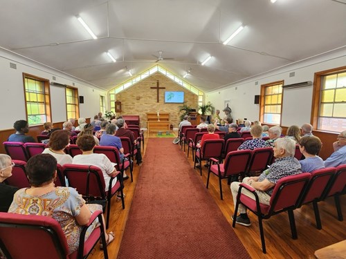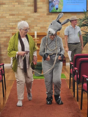 On Palm Sunday approximately 60 people set out a journey around the five Uniting Churches in the Maitland Region. Starting at Rutherford at 9 am for Praise and Sending Off, then some got onto a coach and others went by car, to Bolwarra for a short play (Carrots the Donkey) and service, then to Morpeth for another play where we were confronted with Jesus grief as he entered Jerusalem. At East Maitland we shared the comfort of human touch and remembered the moments of kindness amidst the suffering of Jesus, finally to Maitland for remembering the Last Supper by sharing in Holy Communion and then for lunch in the Hall. About 1.30 people were on their way home. No accidents, no one got lost and no fights. A successful day.